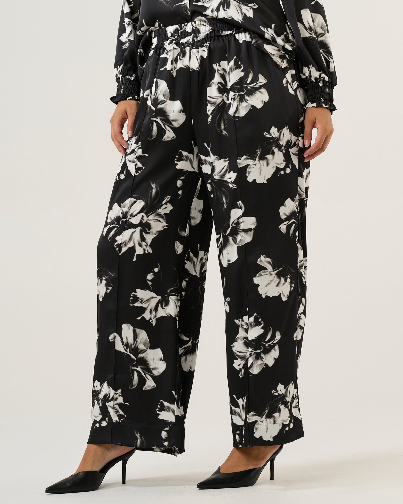 · Black and white print pants; polyester